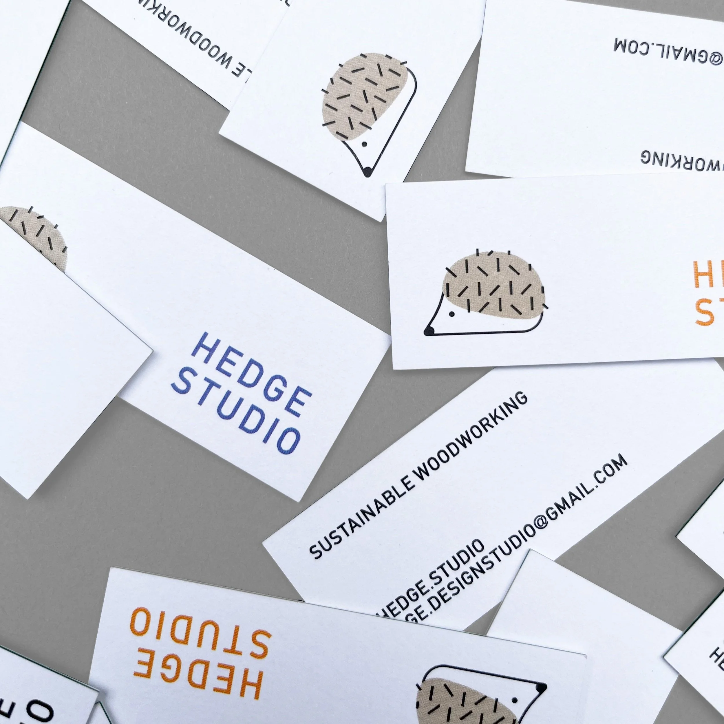 Brand Identity for Philadelphia-based woodworker, Hedge Studio. With a prime focus on design intent and sustainability, Hedge creates wooden goods using in-house natural finishes. Their hedgehog icon was created to be a friendly face but also holds a nod to the founder's architectural background with its CAD hatch-inspired spines & a secret message that marks his humble beginnings trimming neighbor's hedges. This icon exists in several forms including stickers and business cards. Custom branding irons are in the works to allow each product to carry the Hedge mark, as well as add a texturized area for sensory seekers.