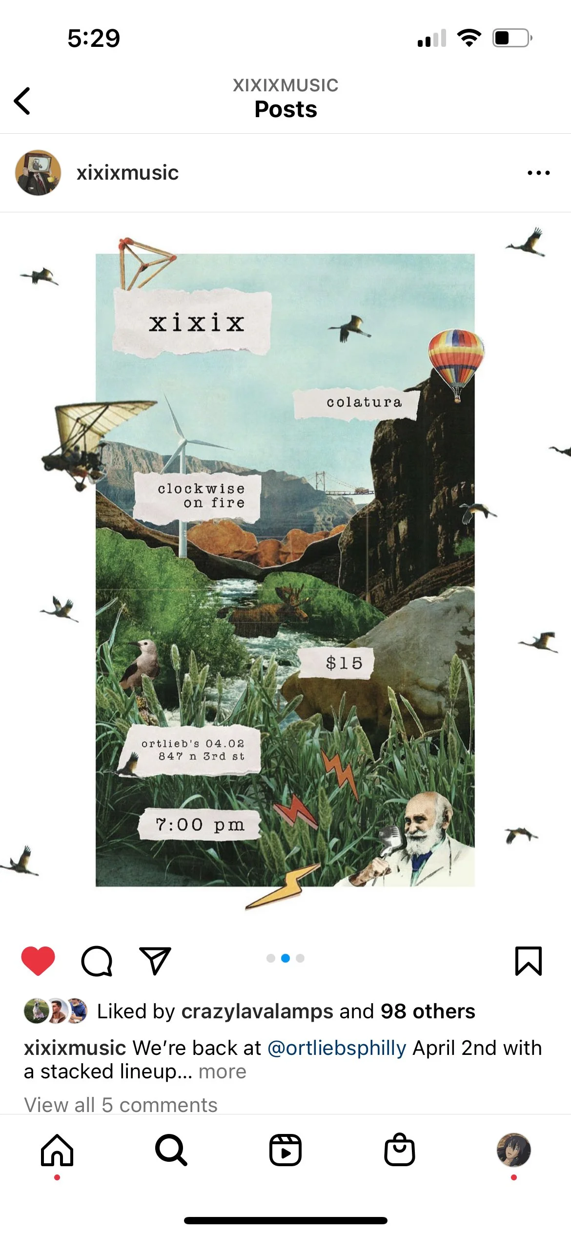 Poster design and accompanying Instagram post for a show at Philadelphia local venue, Ortlieb’s. XIXIX is the solo sonic project of Philadelphia producer Will Brown. The imagery was created by collaging found elements from archival magazines and nature photography books. Also featured, is our merch collab of tote bags.